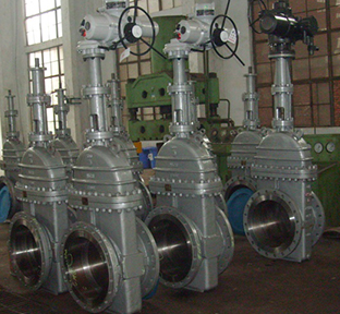閘閥(gate valve)是一個啟閉件閘板,閘板的運(yùn)動方向與流體方向相垂直,閘閥只能作全開和全關(guān),不能作調(diào)節(jié)和節(jié)流。閘閥通過閥座和閘板接觸進(jìn)行密封,通常密封面會堆焊金屬材料以增加耐磨性,如堆焊1Cr13、STL6、不銹鋼等。閘板有剛性閘板和彈性閘板,根據(jù)閘板的不同,閘閥分為剛性閘閥和彈性閘閥